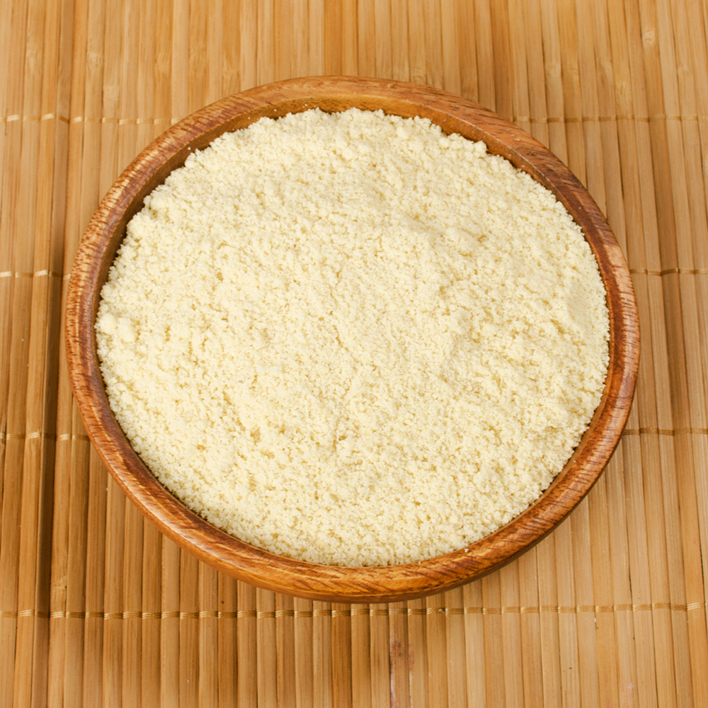 Чистый, без повреждений, однородный продукт цвета слоновой кости с характерным запахом и вкусом свежего миндаля, без посторонних примесей.