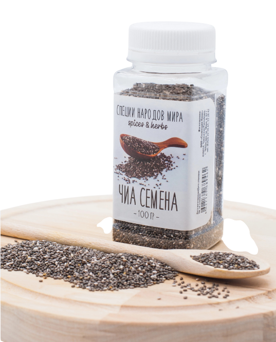 Семена чиа - знаменитый во всем мире суперфуд. Семена чиа содержат натуральную клетчатку, Омега-3 и Омега-6 жирные кислоты, витамины, а также необходимые организму человека минеральные вещества. Семена чиа используют для приготовления хлеба и выпечки, коктейлей и каш, добавляют в салаты и закуски. Во время диеты семена замачивают на несколько часов в чистой воде, чтобы, попав в желудок, они заняли больше пространства, тем самым уменьшая чувство голода.