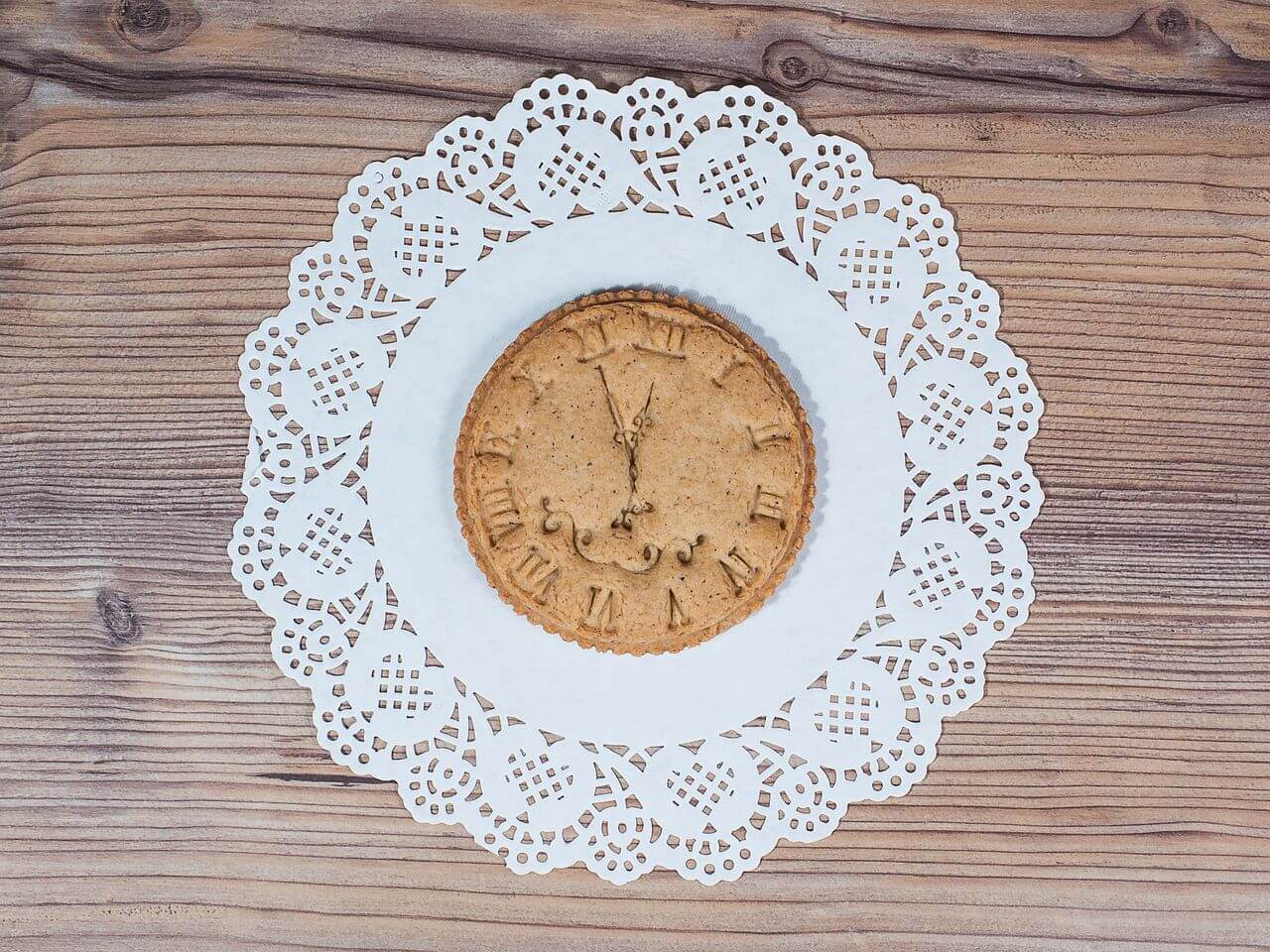 Форма «Куранты» подходит для вырезания песочного и пряничного теста. Просто поместите формочку на предварительно раскатанный пласт, оттисните узор, снимите. Украсьте выпечку цветной и шоколадной глазурью.