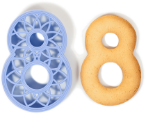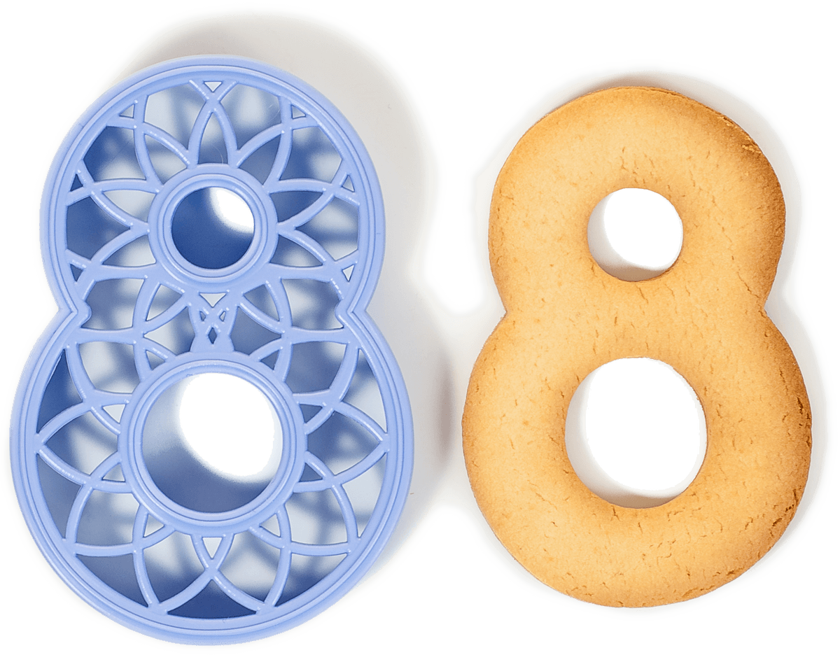 Форма «Восьмерка» подходит для вырезания песочного и пряничного теста. Просто поместите формочку на предварительно раскатанный пласт, оттисните узор, снимите. Украсьте выпечку цветной и шоколадной глазурью.