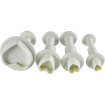 Раскатать сахарную мастику в пласт нужной толщины, вырезать заготовку вырубкой, не нажимая на выталкиватель, перенести заготовку на мягкий коврик. Вытолкнуть заготовку, нажимая на выталкиватель, тем самым придавая заготовке рельеф.