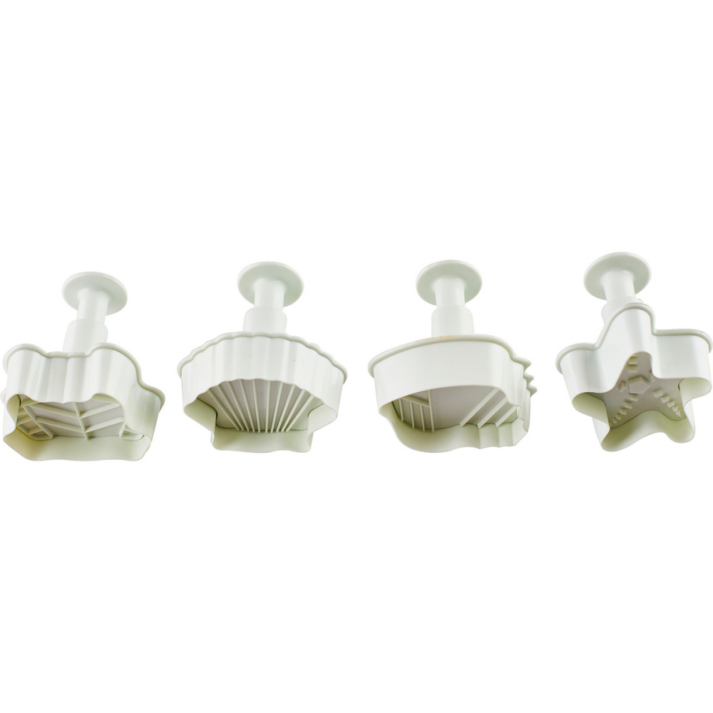 Применние: Вырубка предназначена для изготовления декора из сахарной мастики, марципана. При работе с сахарной мастикой рекомендуется использовать крахмал или мелкодисперсную сахарную пудру во избежание прилипания массы к вырубке. Раскатать сахарную мастику в пласт нужной толщины, вырезать заготовку вырубкой, не нажимая на выталкиватель, перенести заготовку на мягкий коврик. Вытолкнуть заготовку, нажимая на выталкиватель, тем самым придавая заготовке рельеф.