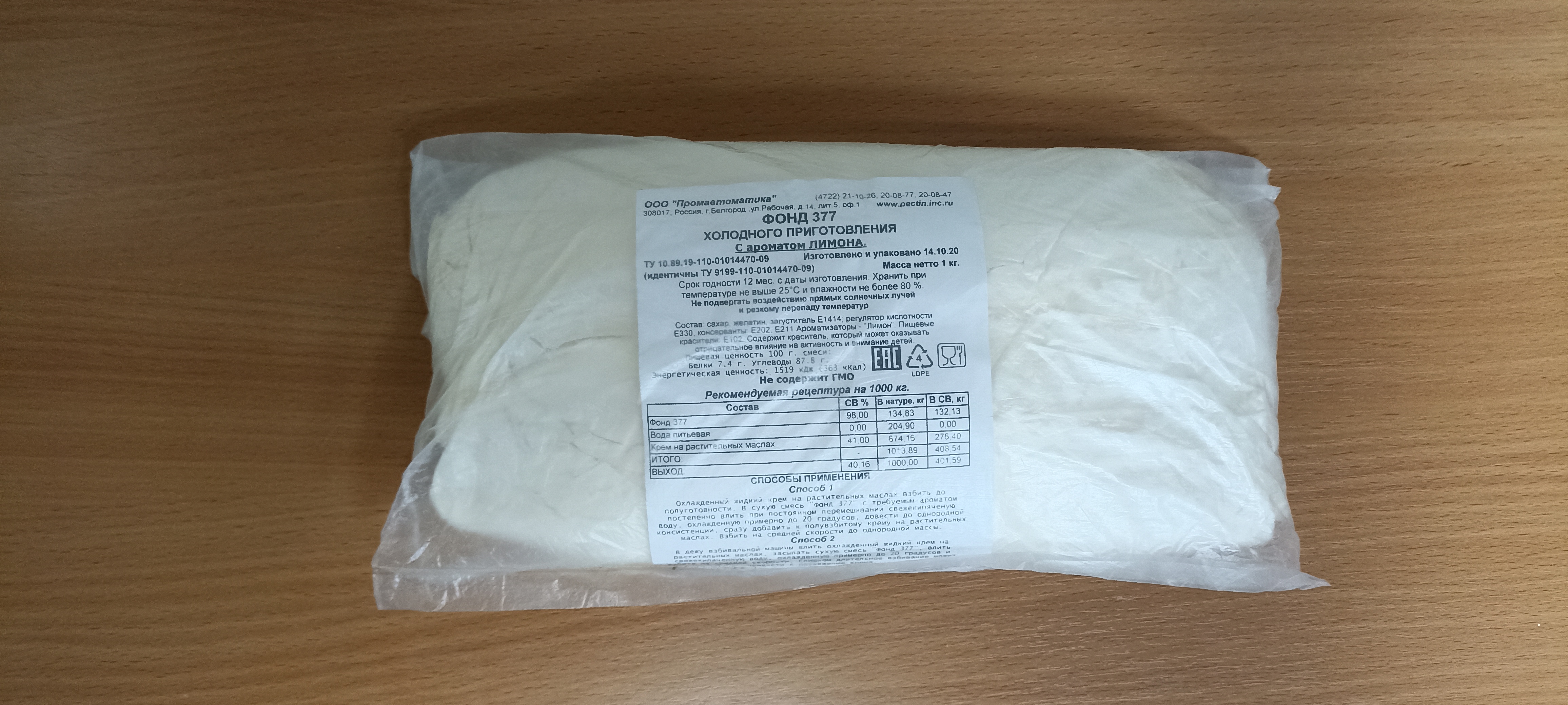 охлаждённый жидкий крем на растительных маслах взбить до полуготовности. В сухую смесь Фонд 377 постепенно влить при постоянном перемешивании свежекипячённую воду, охлаждённую до 20С,