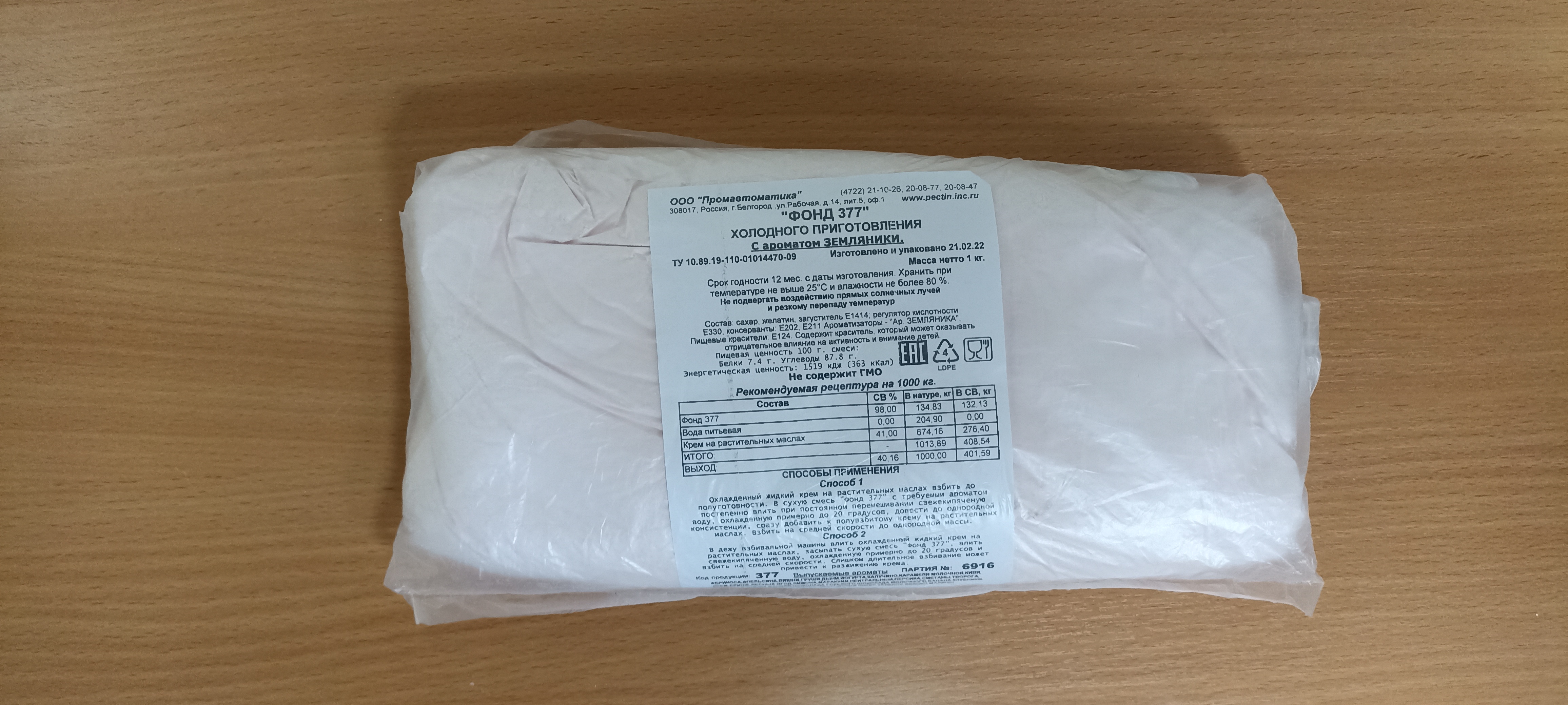 охлаждённый жидкий крем на растительных маслах взбить до полуготовности. В сухую смесь Фонд 377 постепенно влить при постоянном перемешивании свежекипячённую воду, охлаждённую до 20С,